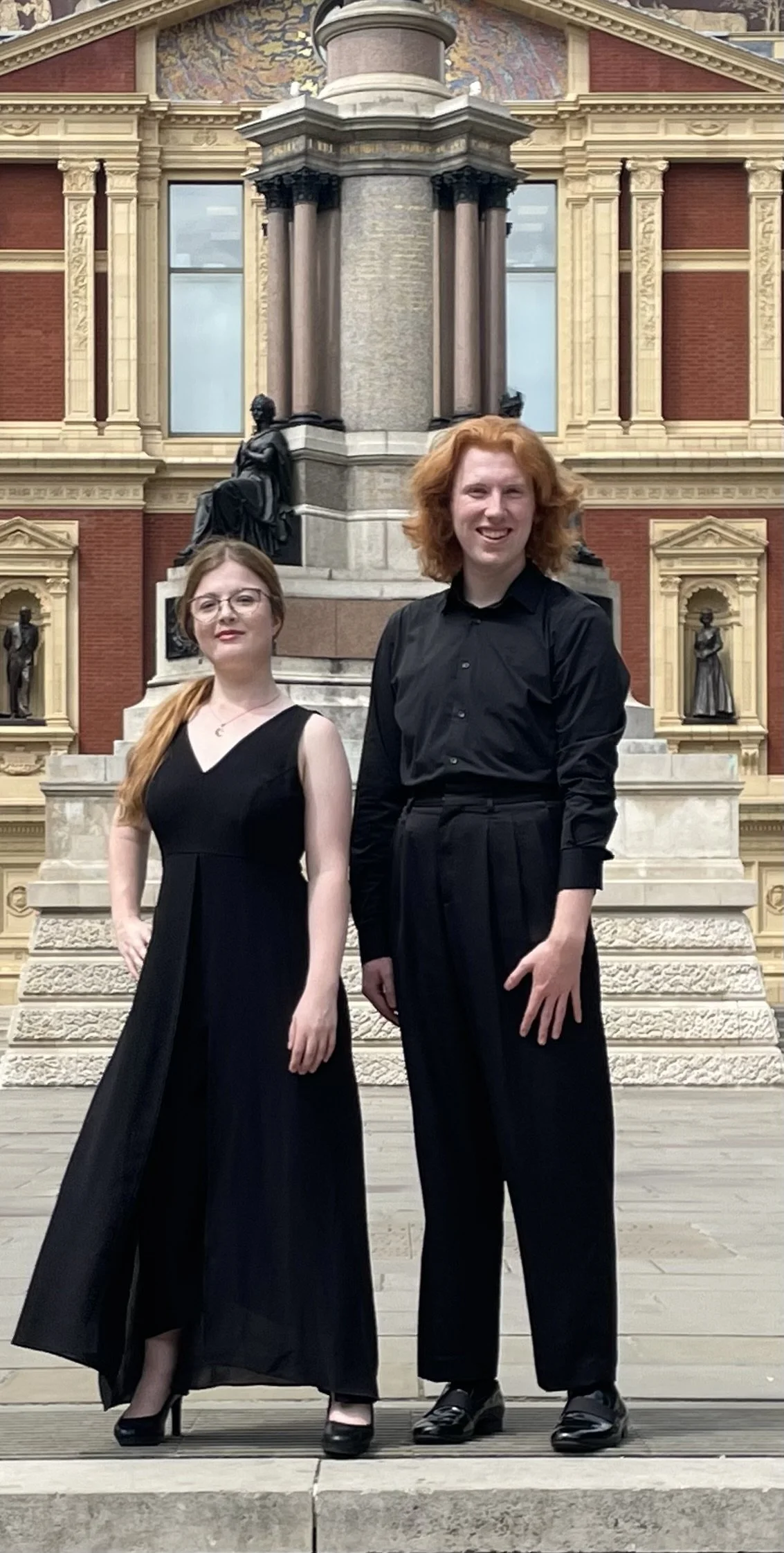 Catherine Reid and Sam Finch formed The Auburn Duo in March 2024 to prepare for Catherine’s first year Masters recital. They met during their studies at the Royal College of Music (RCM), where Catherine is an RCM Scholar and supported by Help Musicians. She is in the second year of her Master of Music in Performance and Sam, a Robert McFadzean Whyte Award Holder, is in his final year of a Bachelor of Music. Catherine worked with Kathleen Bride at the Eastman School of Music during her Bachelor of Music, and now studies with Daphne Boden. Sam studies modern flute with Sue Thomas and Gitte Marcusson and Baroque flute with Rachel Brown and Lisa Beznosiuk.